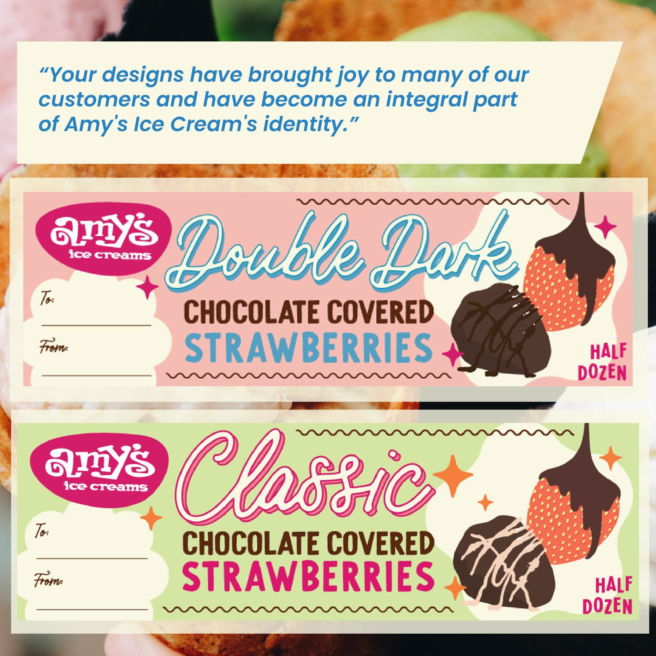 After working together on a few projects, my contact at Amy's Ice Creams secured my design and illustration services on a monthly retainer.